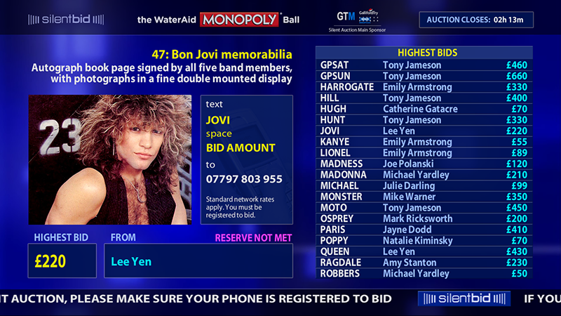 Our gallery contains some screen shots from our HD display output showing various features of the SilentBid system. Just click on an image and then use the cursor key of on-screen controls to move through the gallery.
